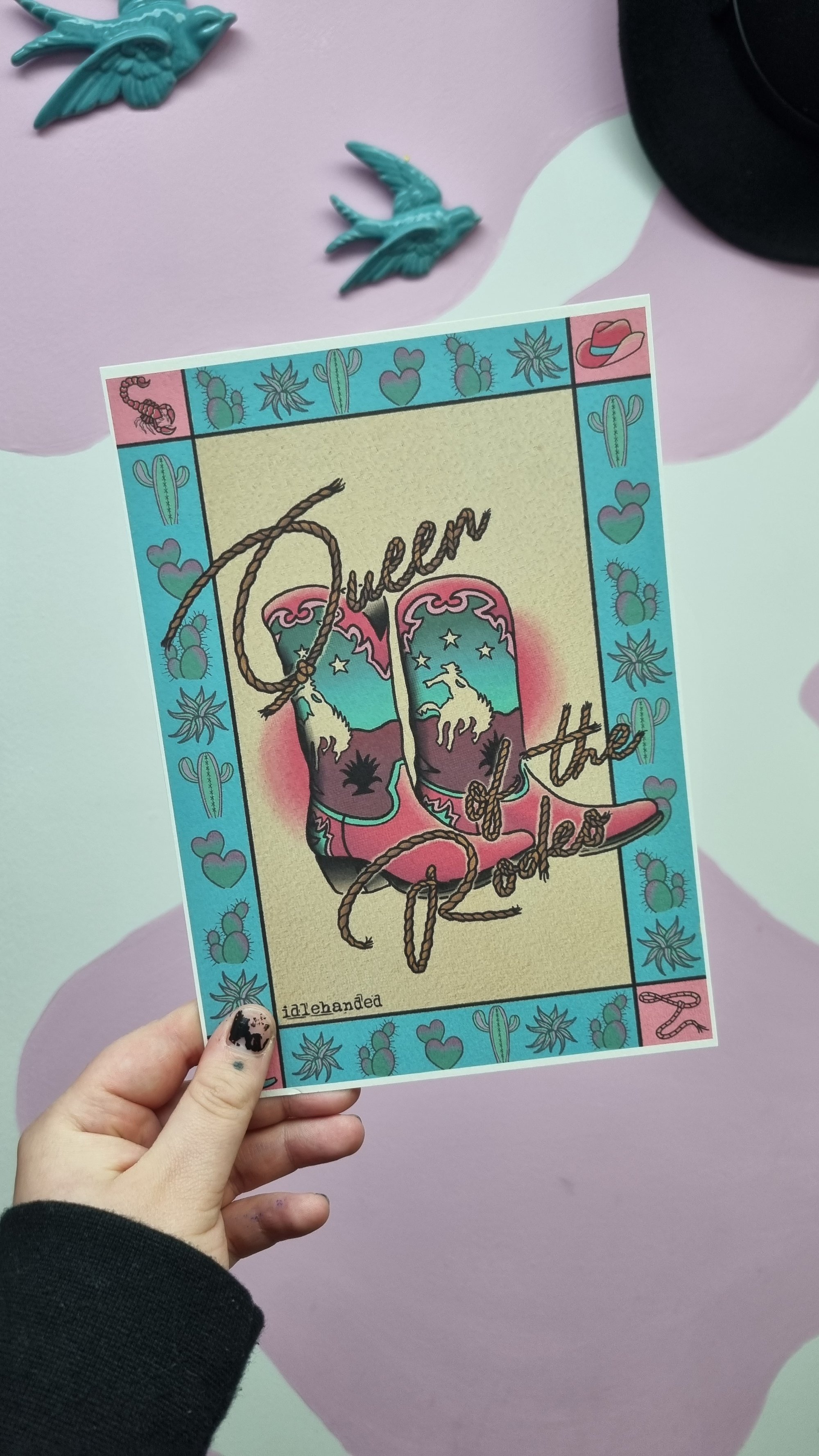 A5 Queen of the Rodeo print. Also available as part of the Hey Cowboy set!